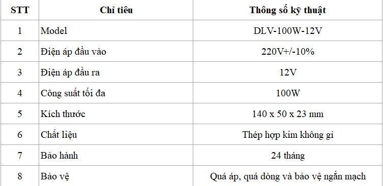 - Nguồn thép 100W-12V luôn đảm bảo đủ công suất kỹ thuật để mọi người có thể dễ dàng tính toán sao cho phù hợp với khối lượng đèn sử dụng, đảm bảo độ bền của nguồn và đèn trong quá trình sử dụng