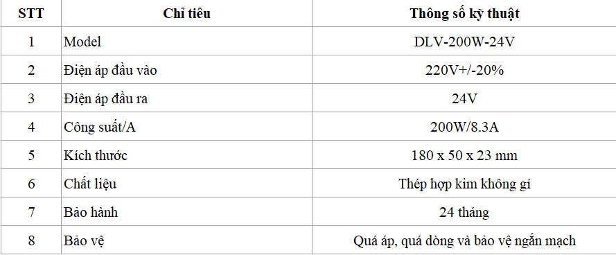 - Nguồn thép 200W-24V luôn đảm bảo đủ công suất kỹ thuật để mọi người có thể dễ dàng tính toán sao cho phù hợp với khối lượng đèn sử dụng, đảm bảo độ bền của nguồn và đèn trong quá trình sử dụng
