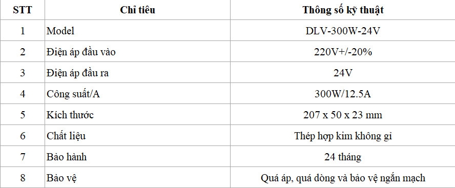 - Nguồn thép 300W-24V luôn đảm bảo đủ công suất kỹ thuật để mọi người có thể dễ dàng tính toán sao cho phù hợp với khối lượng đèn sử dụng, đảm bảo độ bền của nguồn và đèn trong quá trình sử dụng