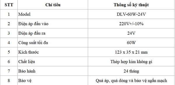 - Nguồn thép 60W-24V luôn đảm bảo đủ công suất kỹ thuật để mọi người có thể dễ dàng tính toán sao cho phù hợp với khối lượng đèn sử dụng, đảm bảo độ bền của nguồn và đèn trong quá trình sử dụng